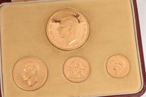 The Royal Mint – 1937 Gold Speciment Four Coin Collection, consisting of a half-sovereign, sovereign, two pound coin and five pound coin.